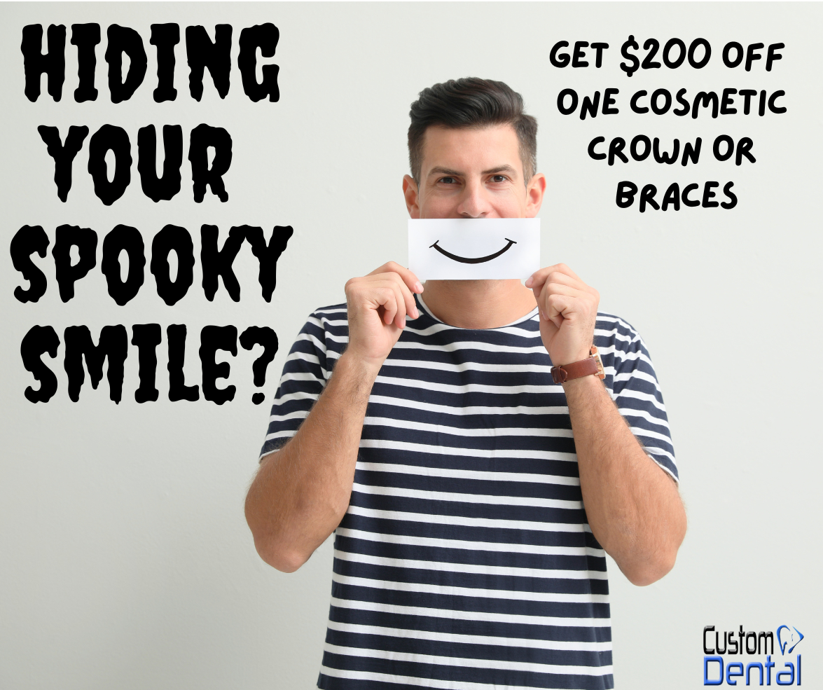 Tired of hiding your spooky smile? Get $200 off one cosmetic crown or braces in October. Call (580) 336-2306 to schedule your appointment and mention code: spooky smile. Expires 10/31/25 and not valid with any other offer. Stop to end.